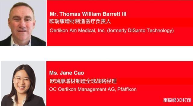 歐瑞康(Oerlikon)是一家擁有百年歷史的瑞士企業(yè),是世界上最具創(chuàng)新力的工業(yè)集團之一。Oerlikon AM(歐瑞康增材制造) 是一家獨立和集成的增材制造方案供應商,主要提供增材制造專用金屬粉末、應用和設(shè)計工程、高端零部件制造和后處理等專業(yè)解決方案。在2019 TCT亞洲展上,南極熊采訪了歐瑞康增材制造醫(yī)療負責人–Thomas William Barrett III先生以及歐瑞康增材制造全球戰(zhàn)略經(jīng)理–曹瑱女士(Ms.Jane Cao),他們分享了Oerlikon AM在增材制造產(chǎn)業(yè)化方面的進展,以及未來的戰(zhàn)略發(fā)展規(guī)劃。