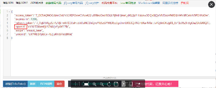 將結(jié)果格式化一下我們可以就看到我們想要的openid