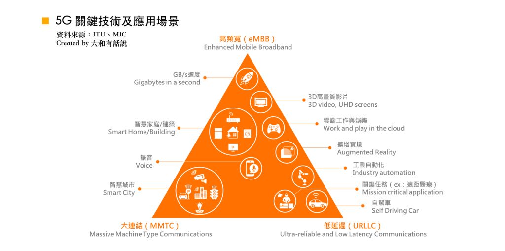 例如,當(dāng)場(chǎng)域要求高帶寬(eMBB)、低延遲(URLLC)等特性時(shí),就適合運(yùn)用高頻的毫米波頻段,例如自駕車、遠(yuǎn)距手術(shù)等應(yīng)用場(chǎng)景;當(dāng)場(chǎng)域要求低功耗、大范圍覆蓋以及穩(wěn)定連接等特性(MMTC)時(shí),則較適合sub 6GHz低頻頻段,例如智慧城市的相關(guān)應(yīng)用。